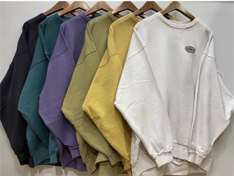 【インレー裏毛ピグメント加工切り替えクルーロング】
