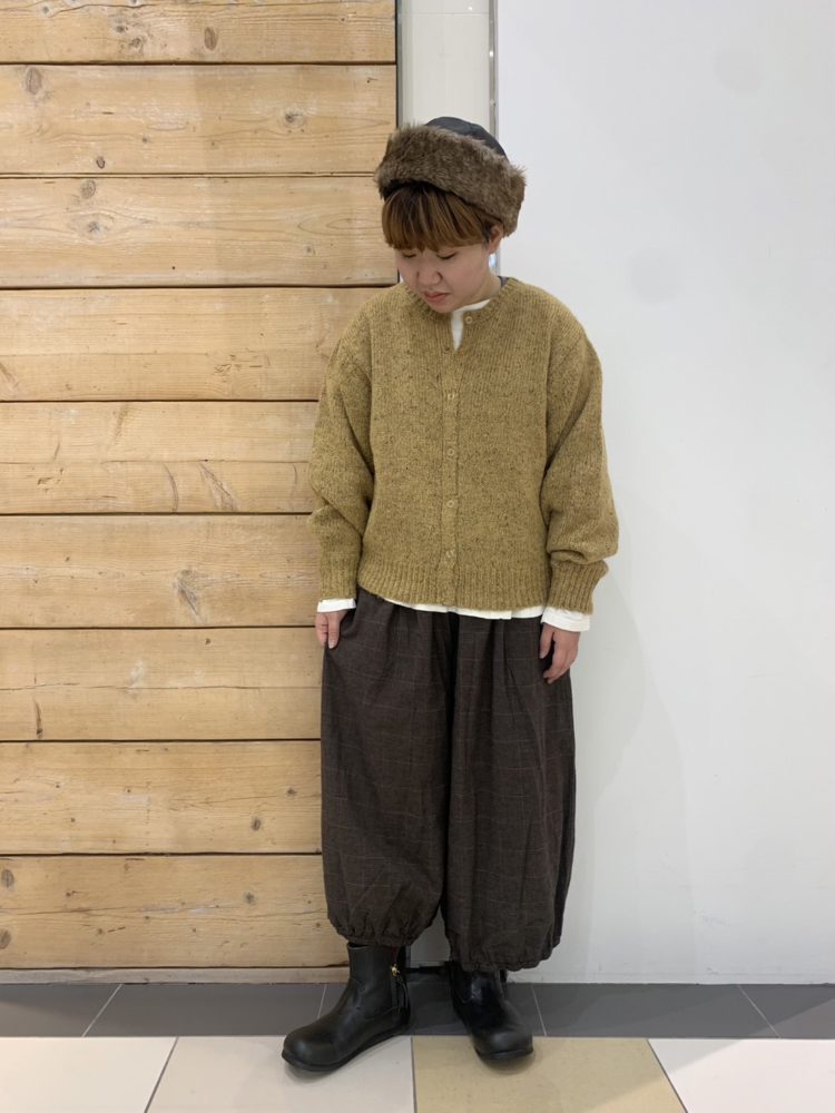 【綿麻起毛千鳥グレンチェックボリュームパンツ】