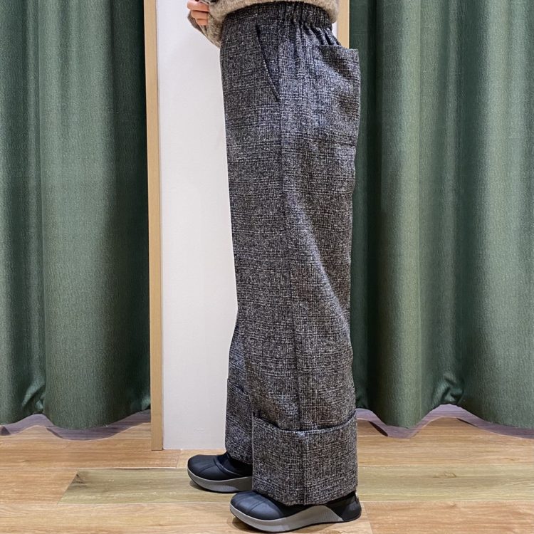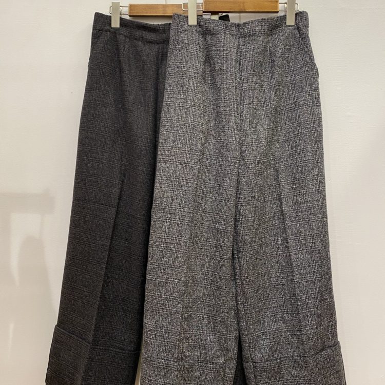 【グレンチェックロールヘムセンタープレスイージーパンツ】