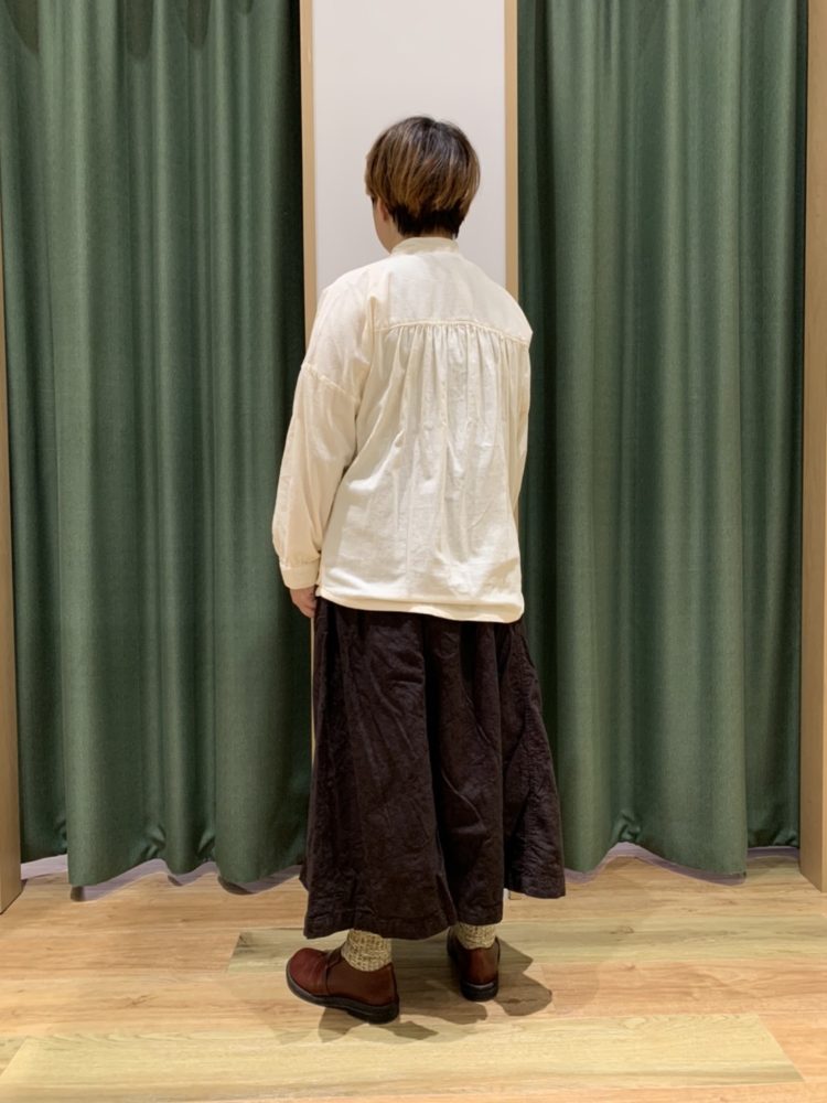 スタンドカラーコーデュロイブラウス。