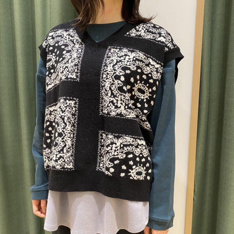 【ジャガード柄Vネックベスト】