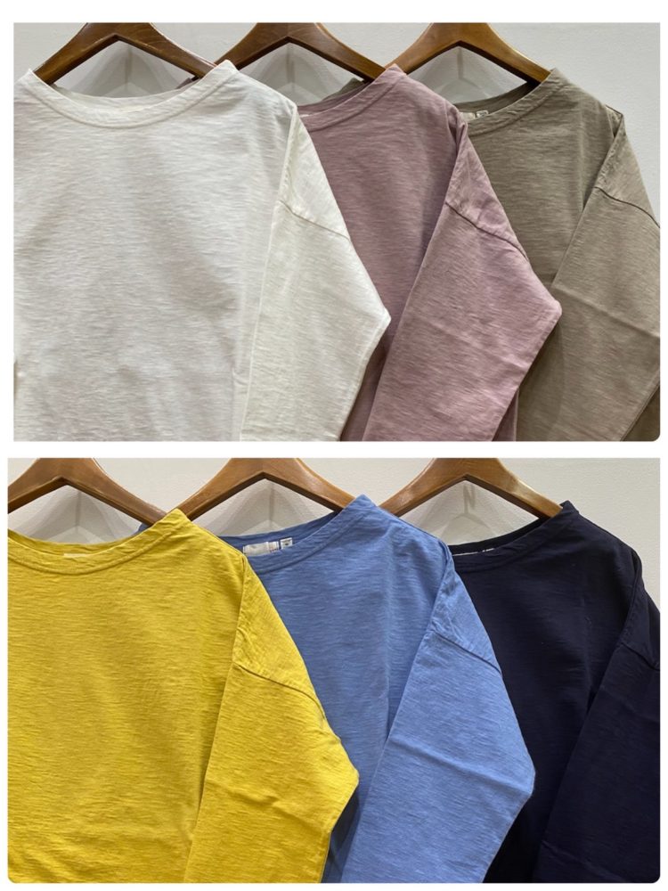 Col.ホワイト、ライラック(着用商品)、フラックス、カスタード、ブルー、ネイビー