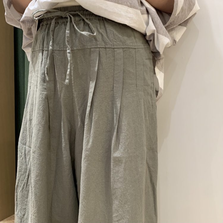 【綿麻平織切替タックパンツ】