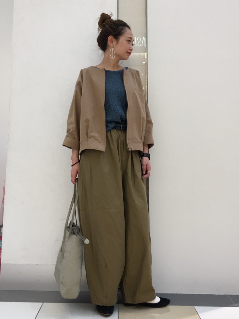 『ベージュカラー×ブルー』で優しい大人カジュアルに。