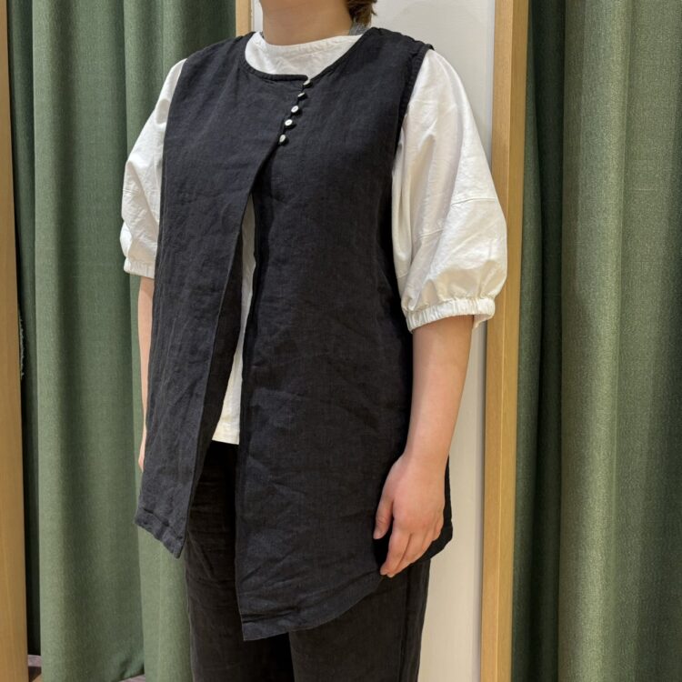 ハリ感のあるリネン素材のジレ。