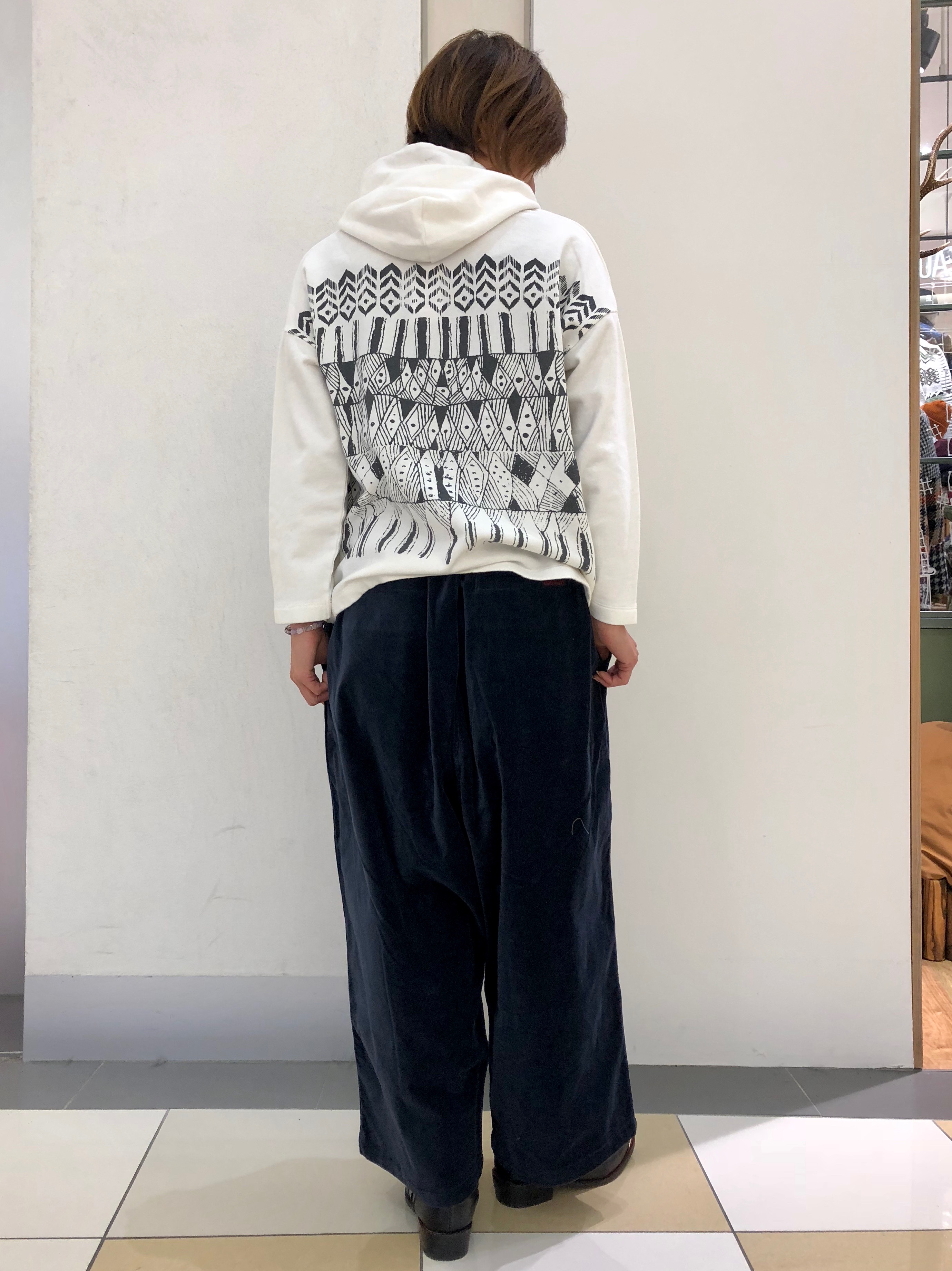 アフリカン柄が目を引くパーカーに