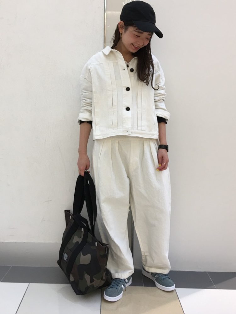今回は『ホワイト』カラーのデニムコートを使って