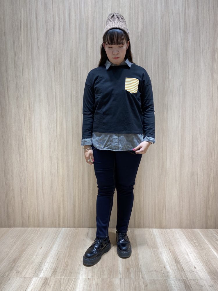 短め丈のカットソーにネルシャツをインする事でバランスの良いレイヤードが出来ました◎