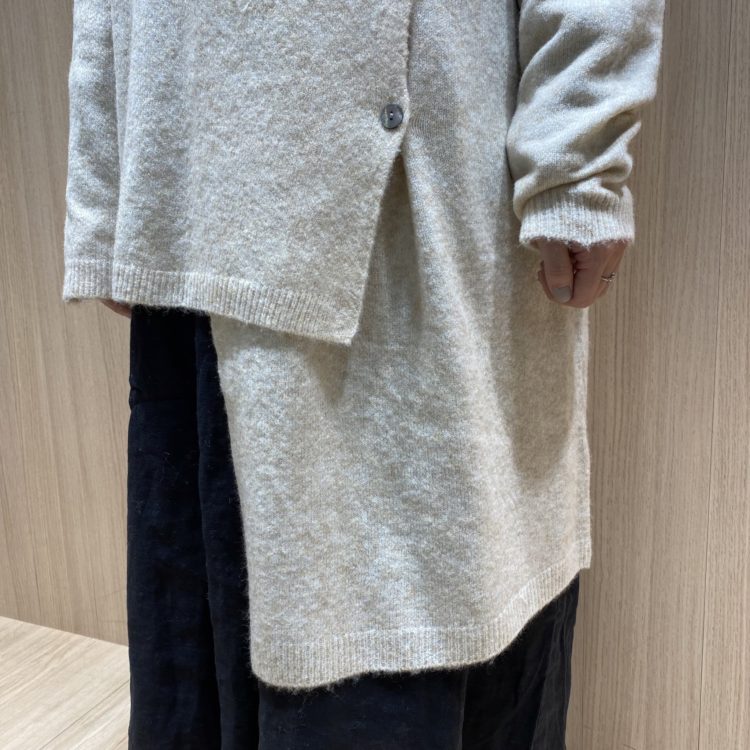 アウター・トップス共にアシンメトリーのシルエットなので遊んでみました◎