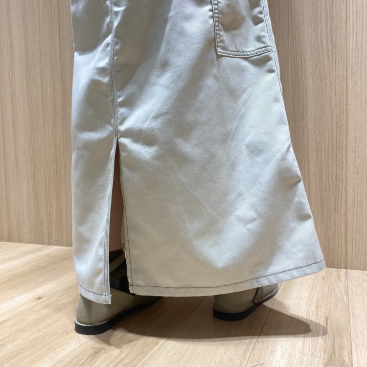 後ろにスリットがある事で、ロング丈でも足捌きが楽ちんなのがポイント。