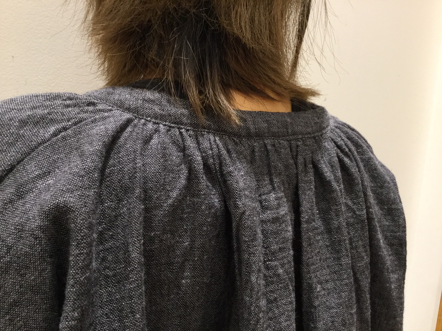 首の後ろにはギャザーがたっぷり入っていて、後ろ姿もふんわりとした女性らしいシルエットに仕上がっています!