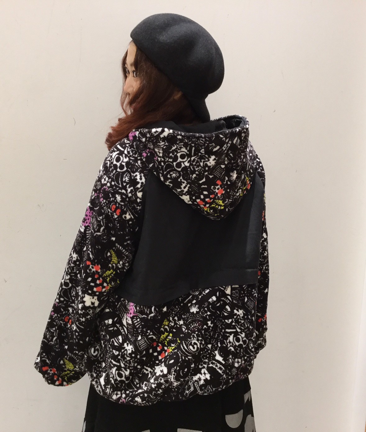 いろんなキャラクターやモチーフをぎゅっと詰め込んだオリジナルプリントのブルゾン。