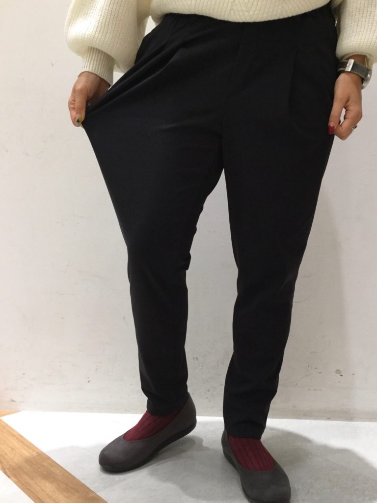 スッキリとしたパンツに、