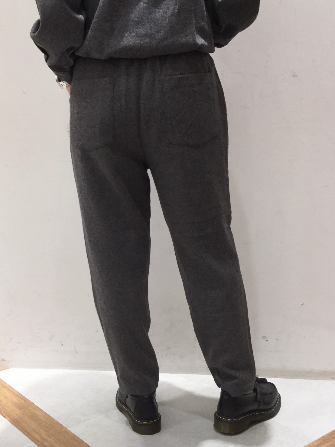 タック入りのヒップ周りはゆったりと、裾に向かって細身に仕立てたテーパードラインがスッキリ見えするポイントに。