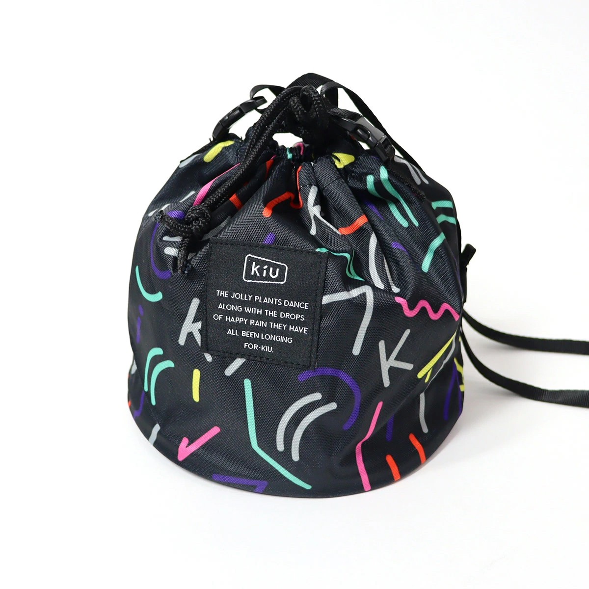 生地の表面は撥水加工、裏面は防水加工を施してある、ブランドロゴネームがアクセントになった巾着タイプのショルダーポーチ。