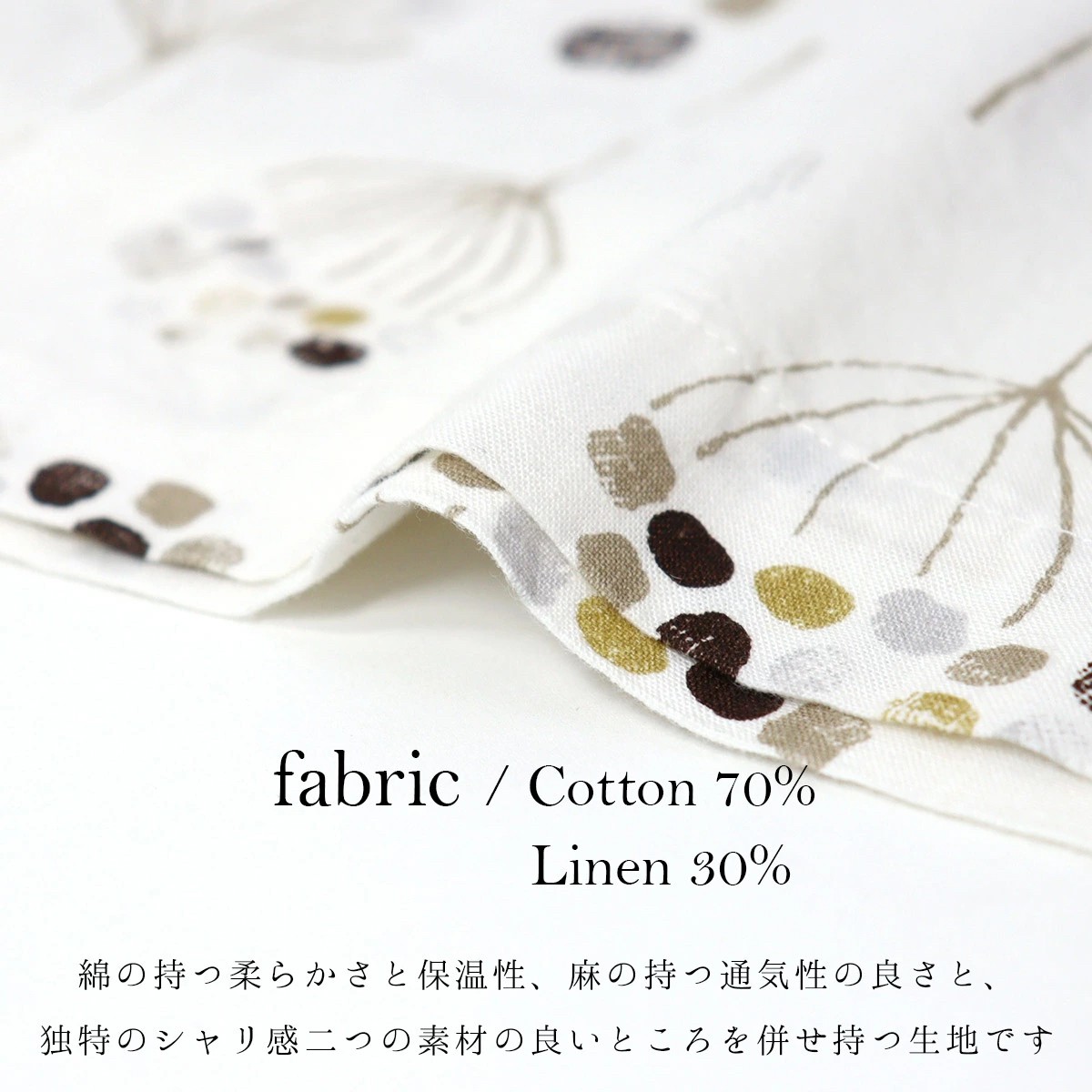 綿麻生地を使用したお花柄のスカートのようなワイドキュロットパンツ。