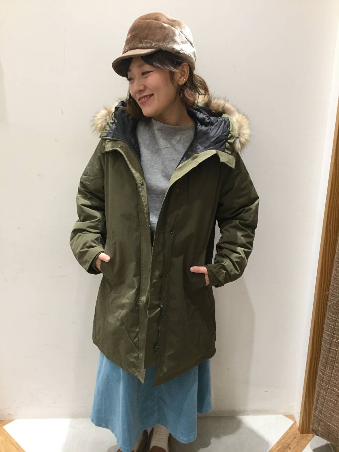 >フードの淵についたファーは取り外し可能。