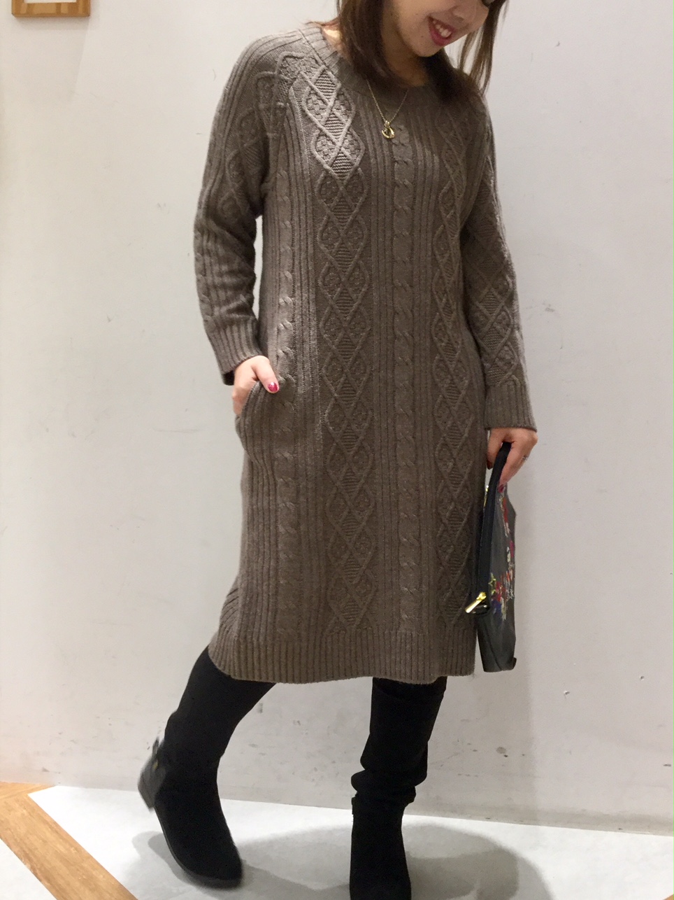 【ケーブルニットワンピース】