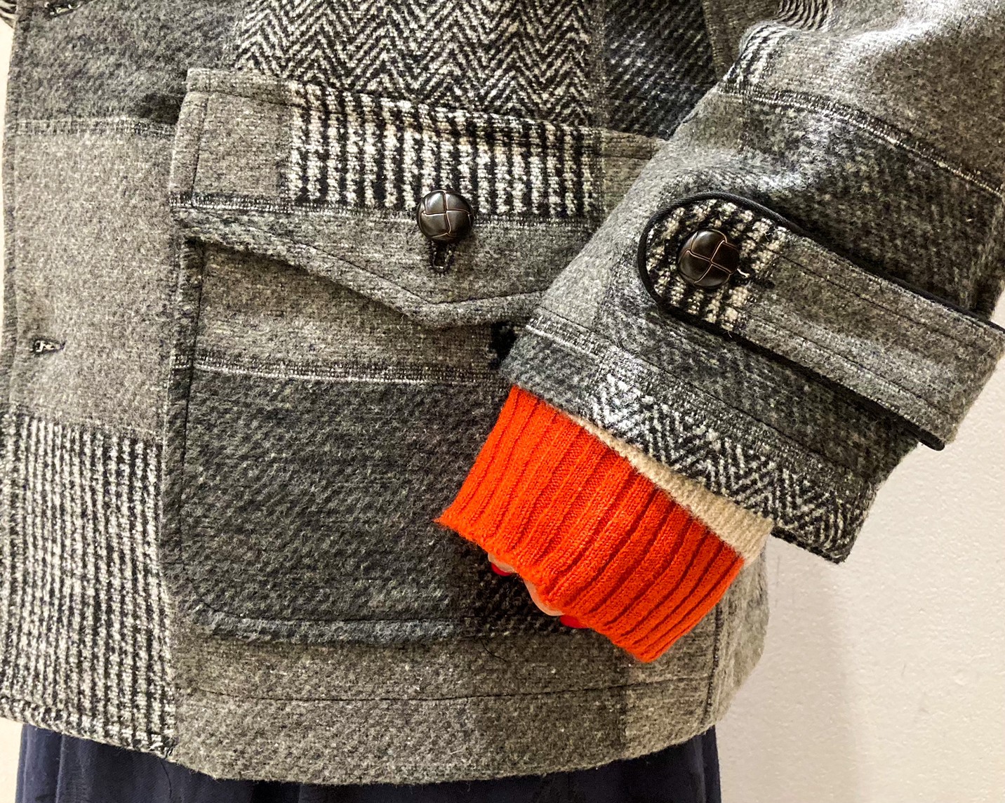 ▽パッチワーク風ウールフードジャケット