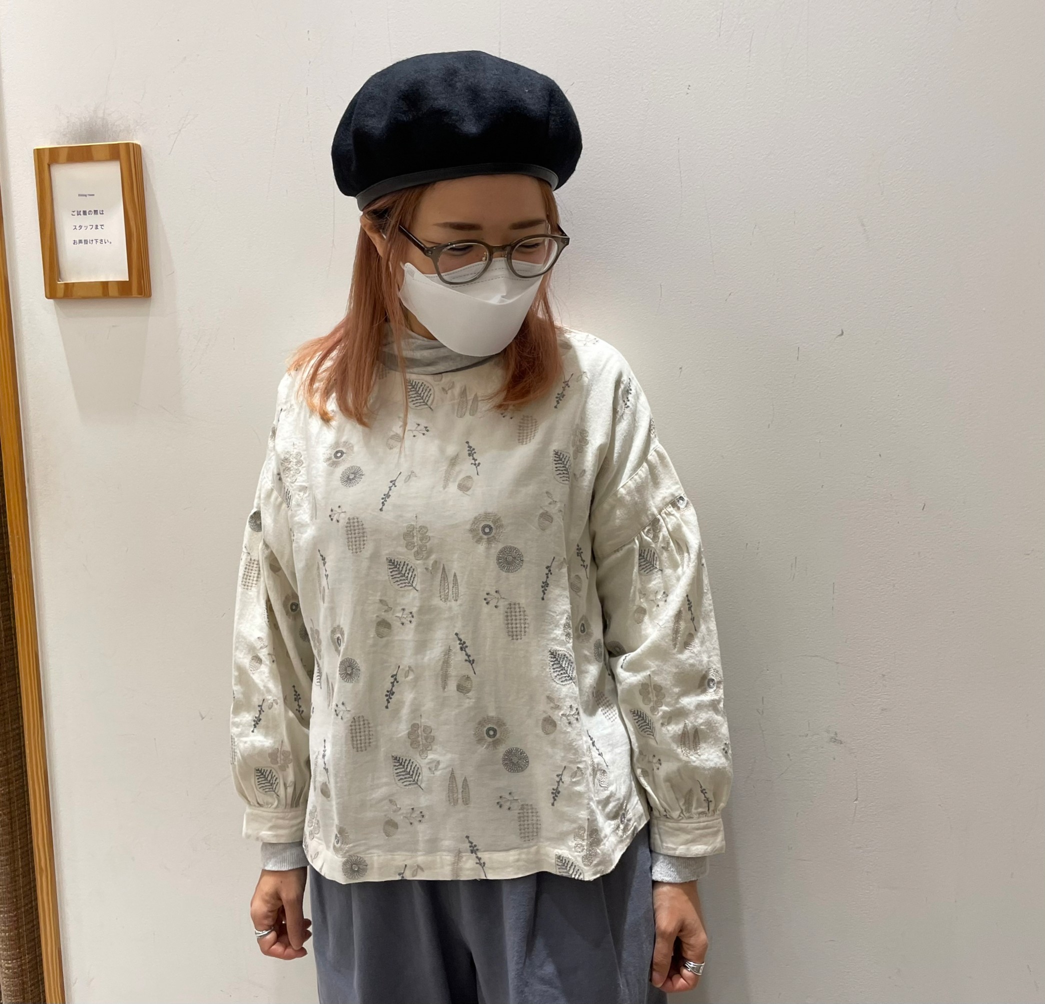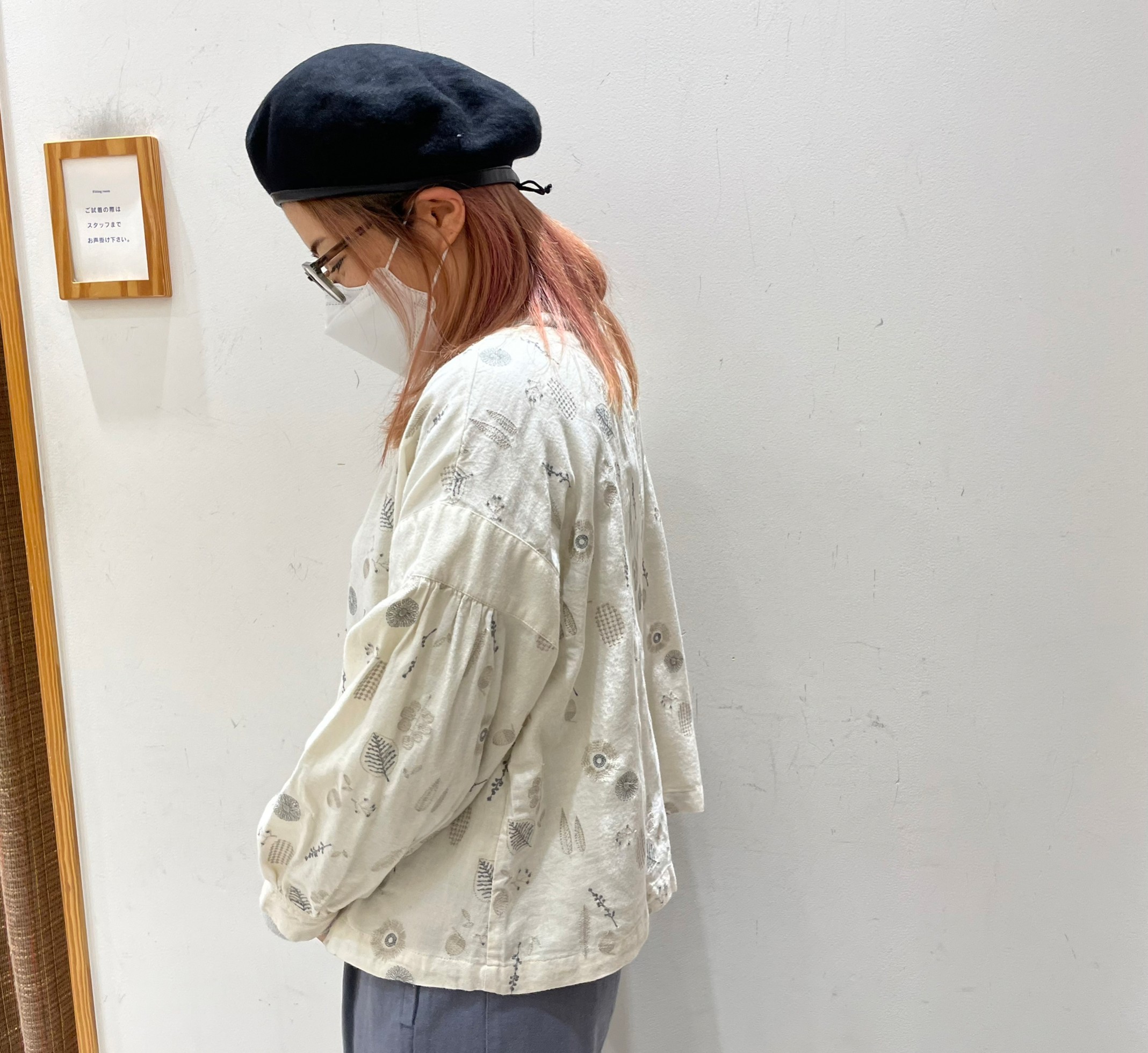 ▽コットンツイル起毛総柄刺繍2wayブラウス