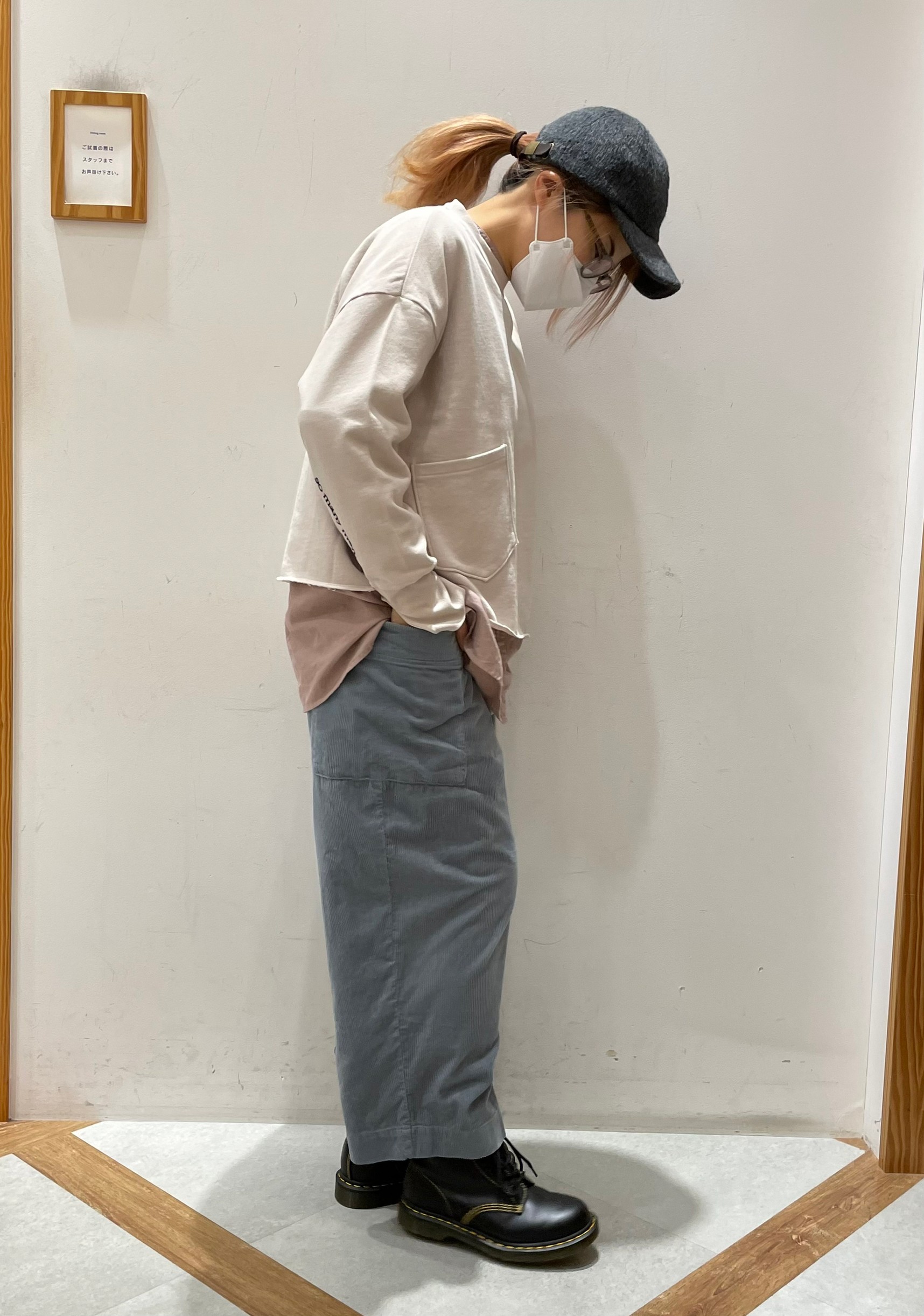 サイドにはスリットが入っているので、ゆったりとしたボトムやスカートの形を崩さず着用していただけます♪
