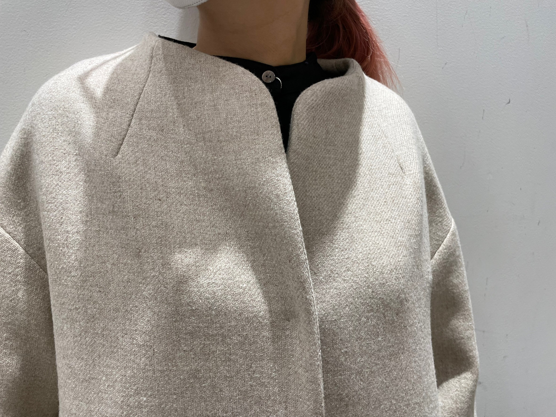 少し立ち上がった女性らしい形の上品な衿なのでお出掛けスタイルにもオススメ。