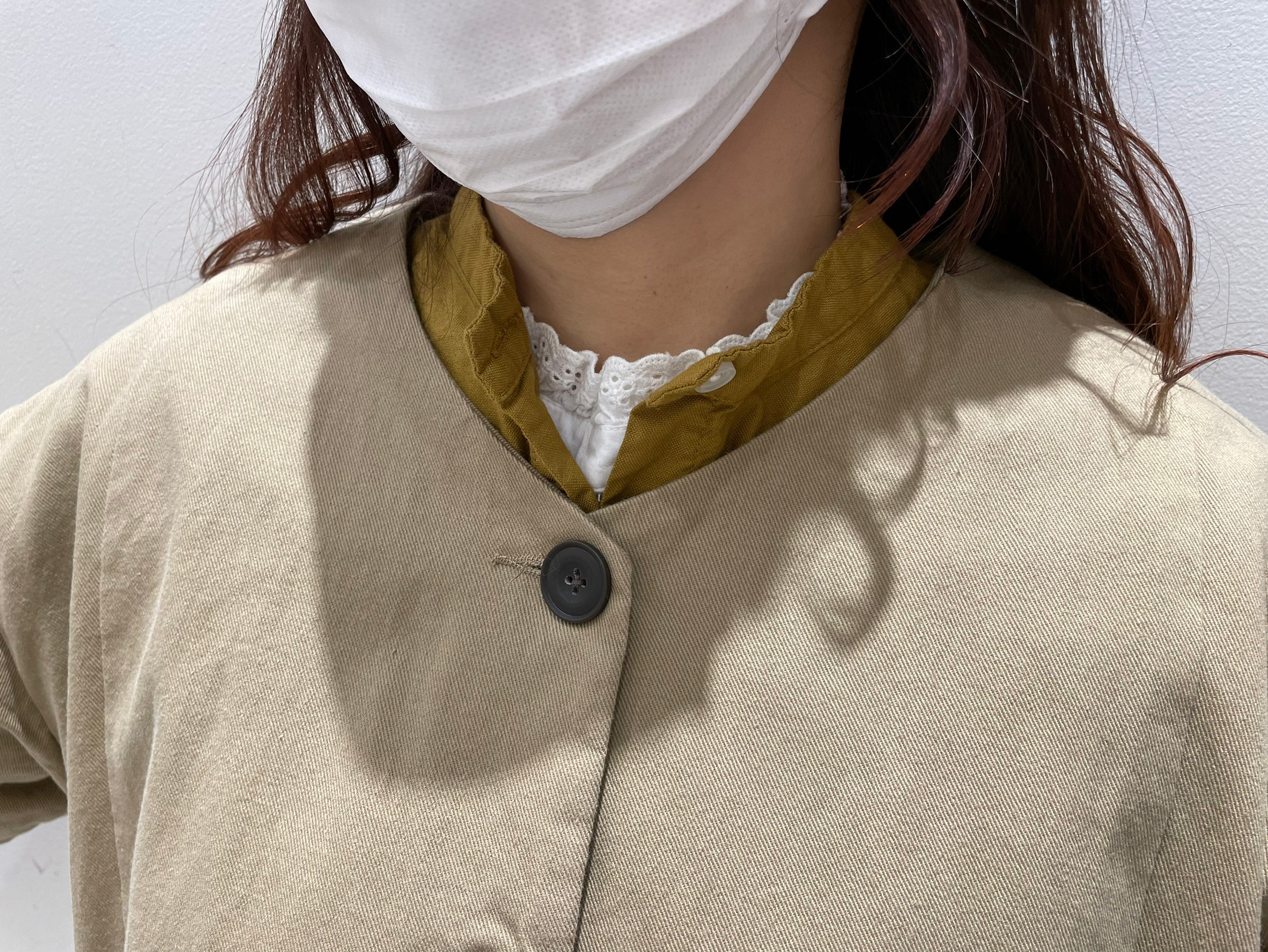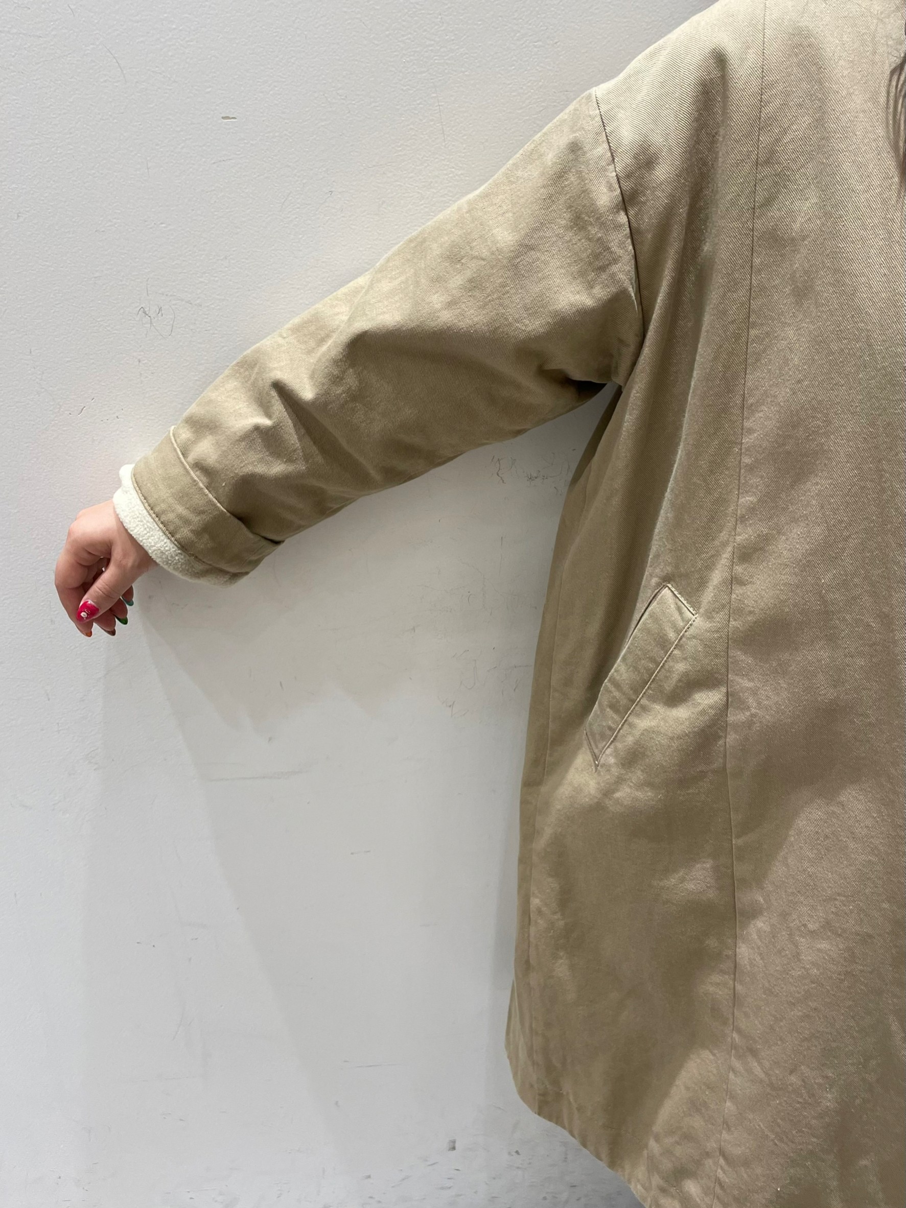 ▽ヘビーコットンツイルノーカラー裏地フリースAラインコート