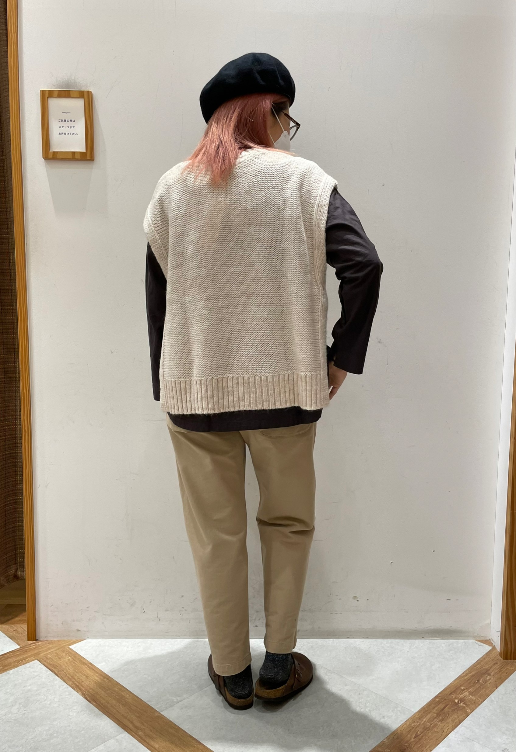 スカートにもゆったりめのボトムにも合わせやすいベストが入荷してきます♪