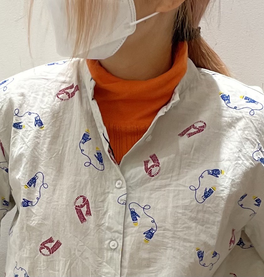 今回は少しスタンドネックになっているシャツなのでボタンをあけましたが、全て閉めてしまっても大丈夫です☺️