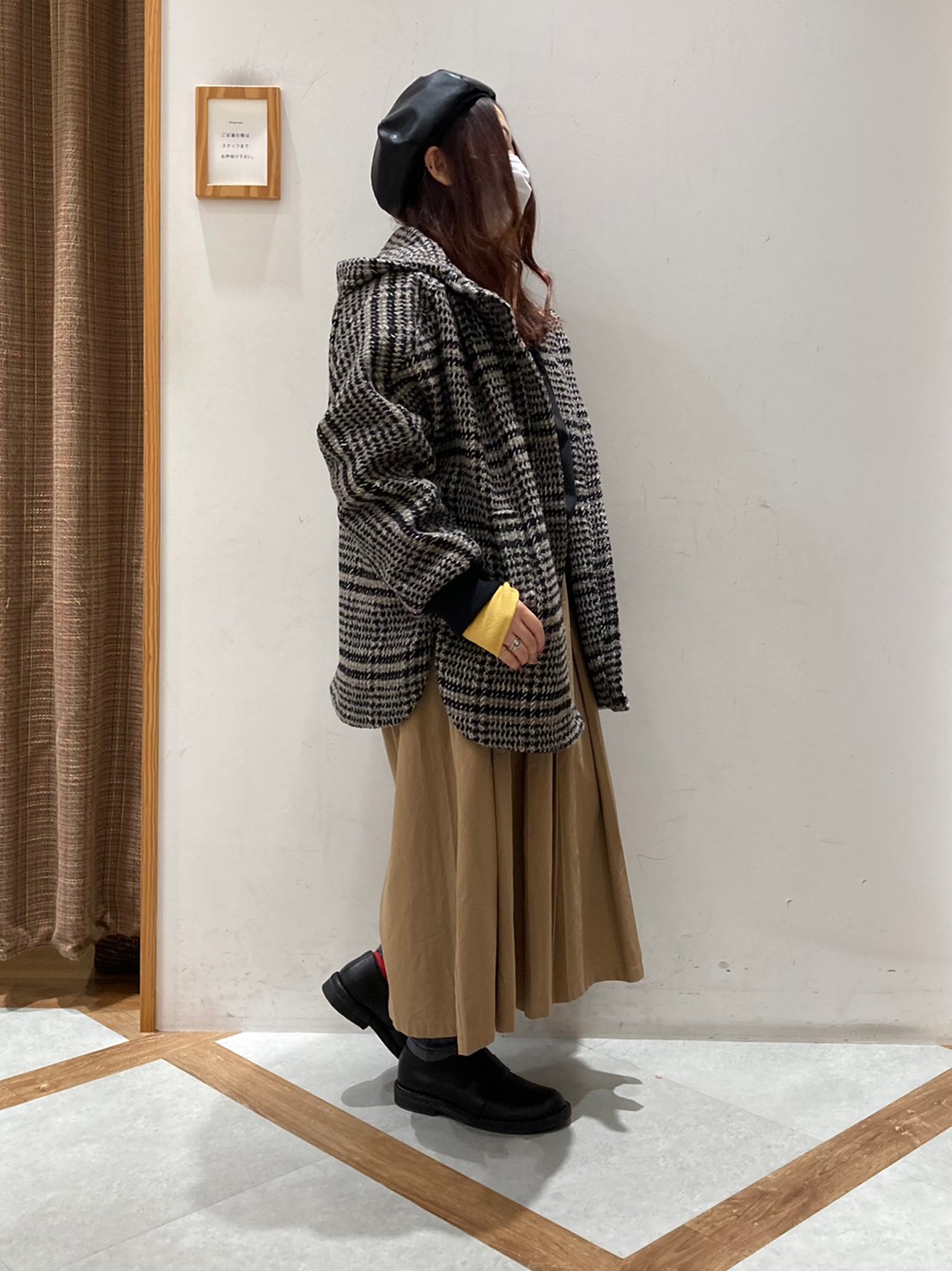 全体的にゆったりシルエットなので、今時期の厚手のニットとの組み合わせもオススメです。