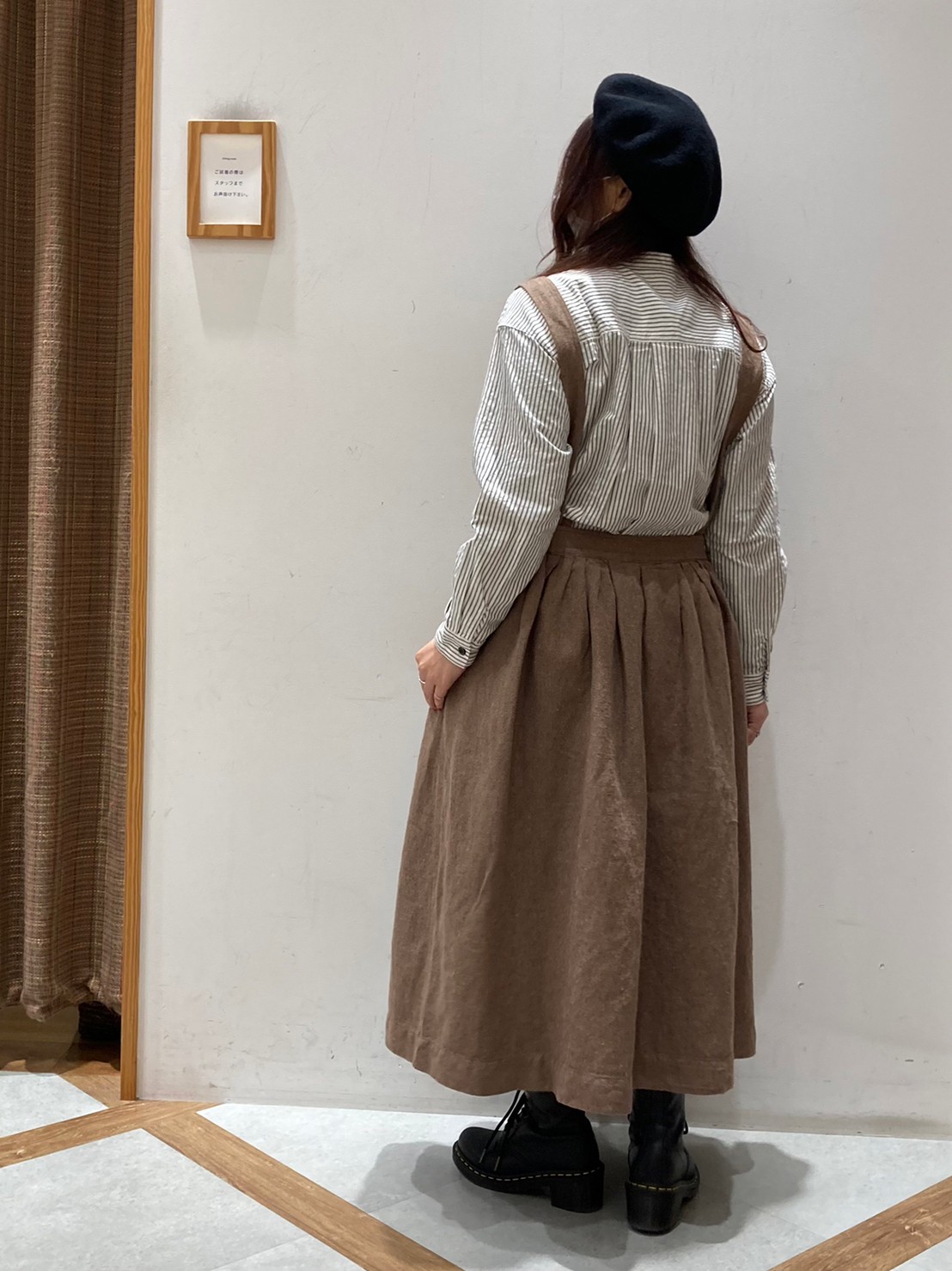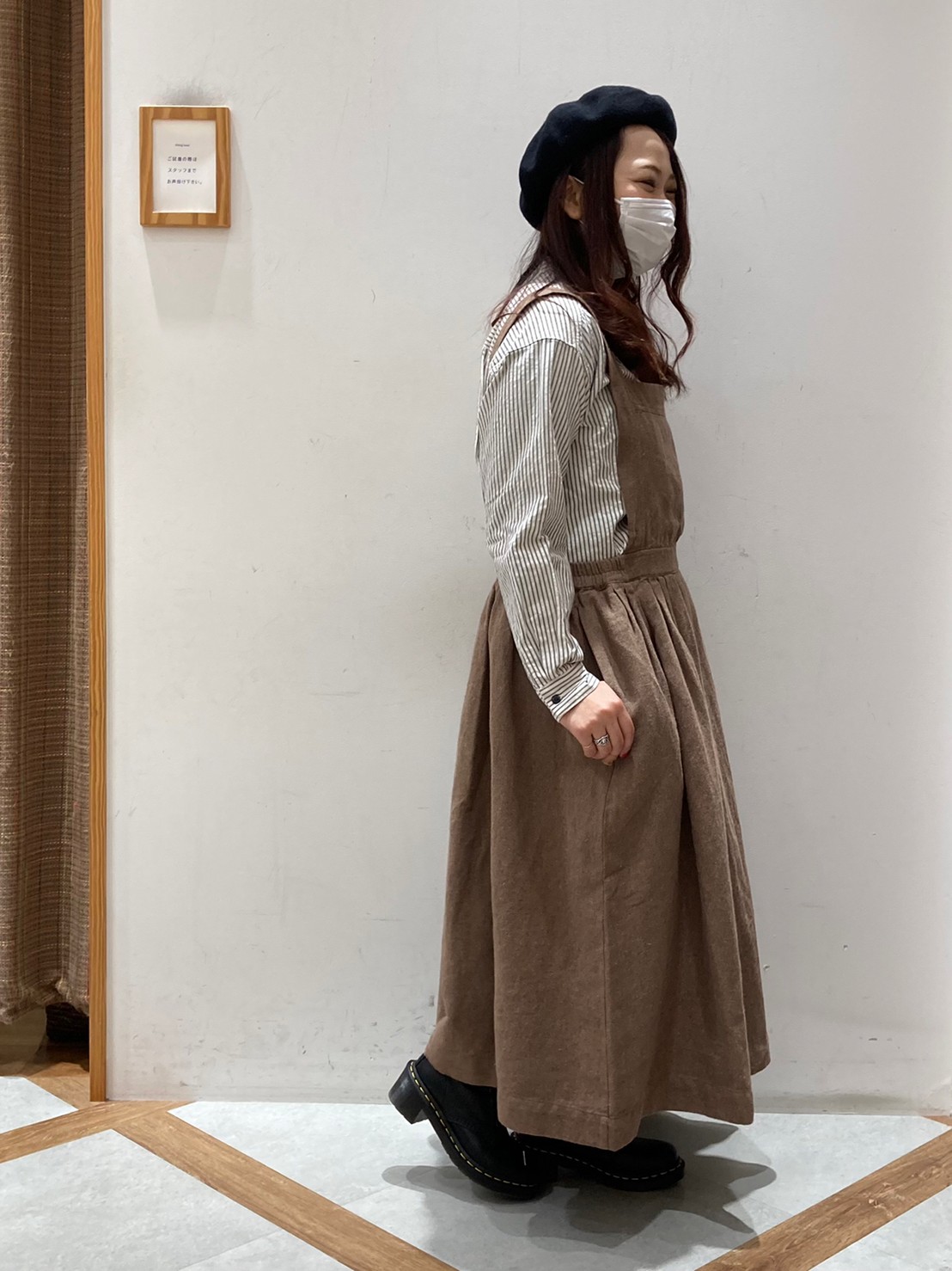 中にシャツやパーカー、ニットなど色んな組み合わせが出来るので、ジャンパースカートはこの時期特にオススメのアイテム♪