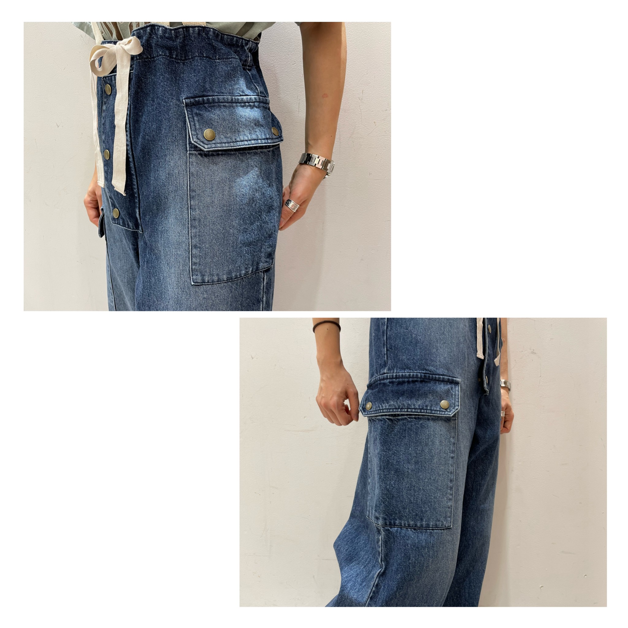 ウエストにテープを通すことでウエストラインを絞ったより女性らしいハイウエストのスッキリとした着こなしに♪