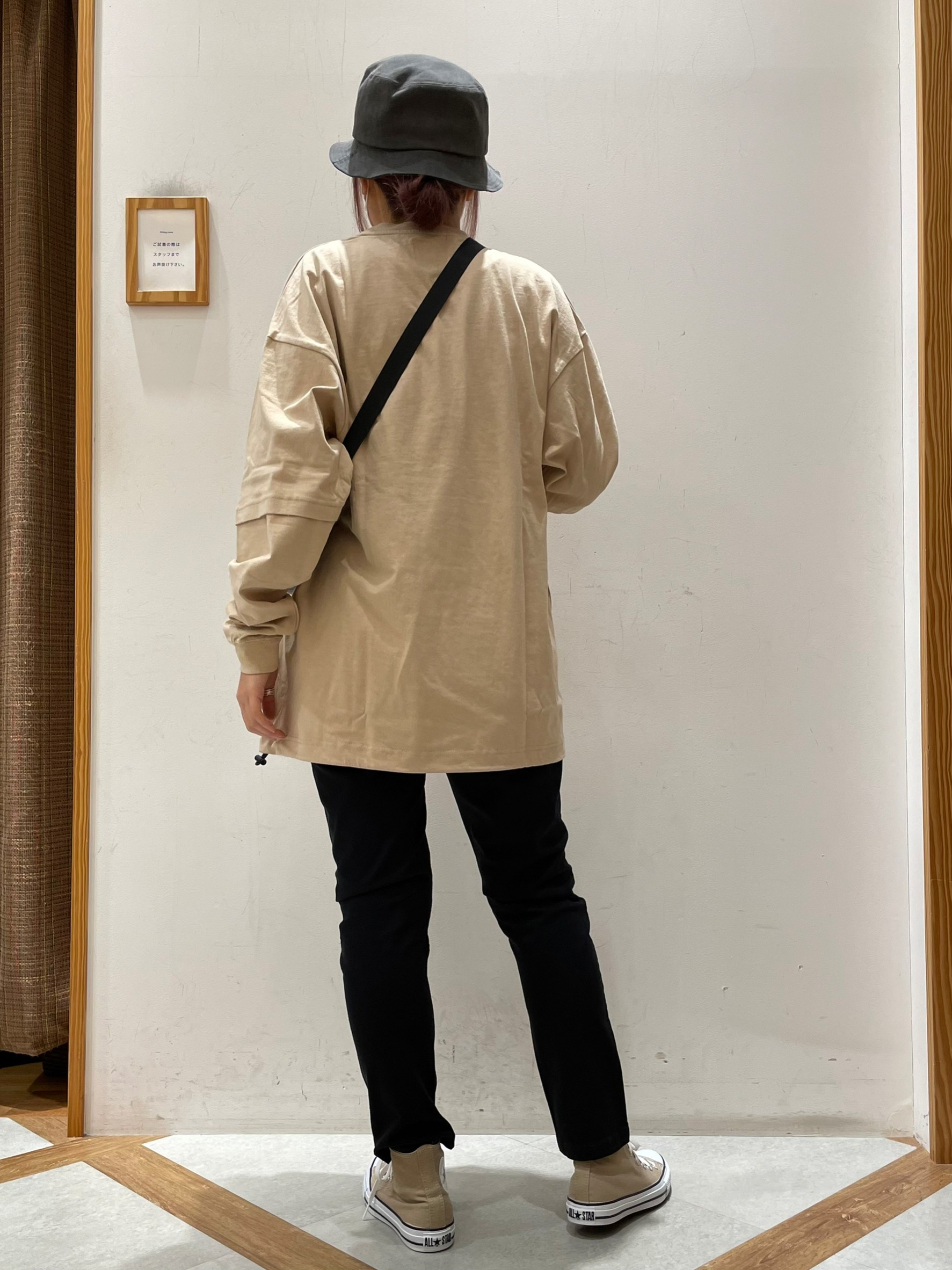 ブラックのスキニーにオーバーサイズの長袖トップスを合わせたオーソドックスなアクティブスタイル!!