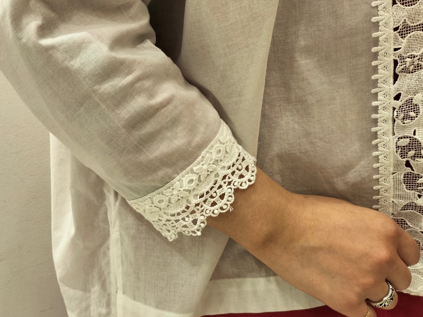 重ね着もしやすいゆったりとしたシルエットとふわっと軽やかな着心地が特徴で、前開きで羽織りとしてコーディネートに取り入れるのもオススメですよ〜!!
