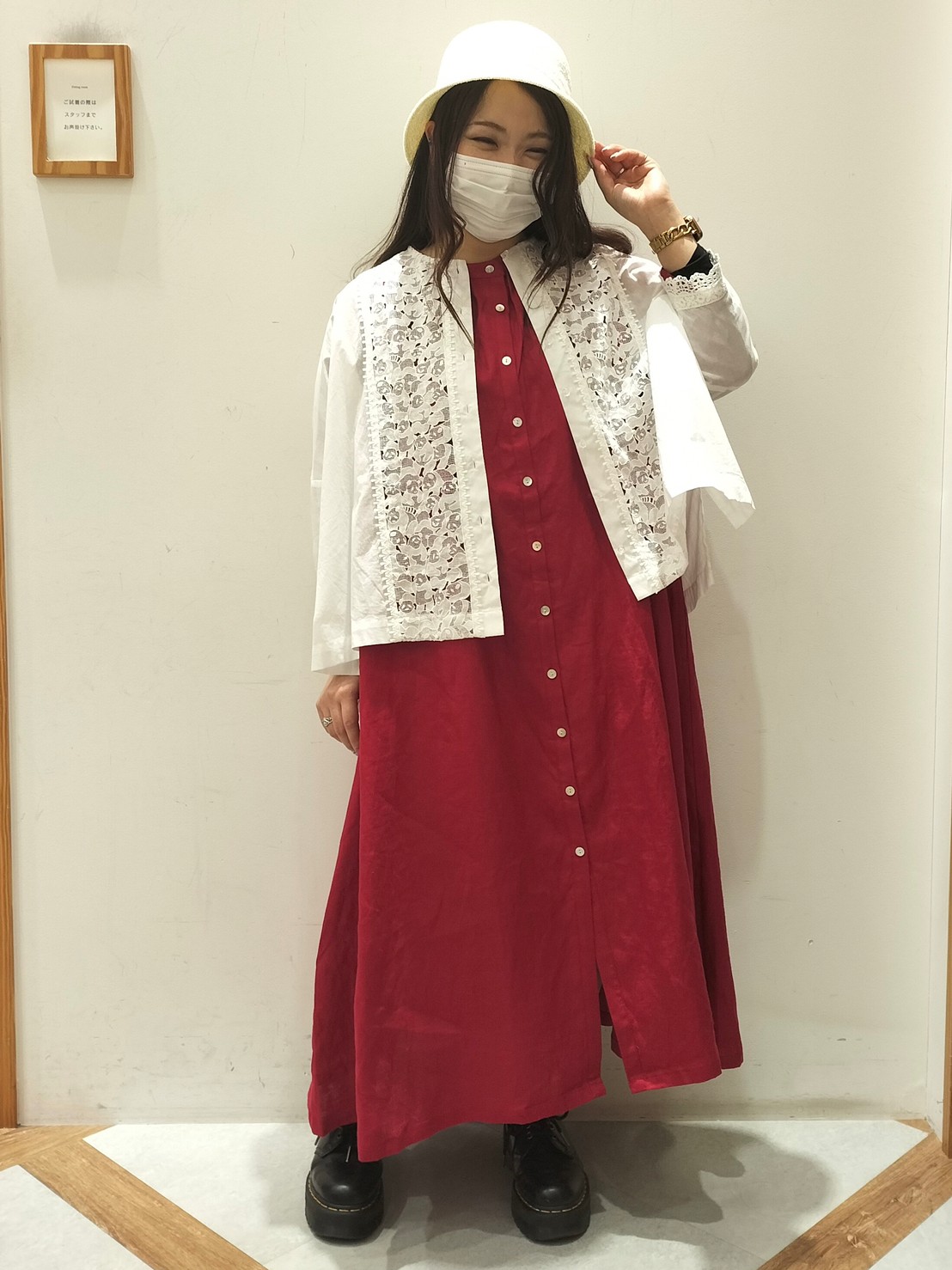一枚で主役になってくれる、発色のいい【アカ】のワンピース。