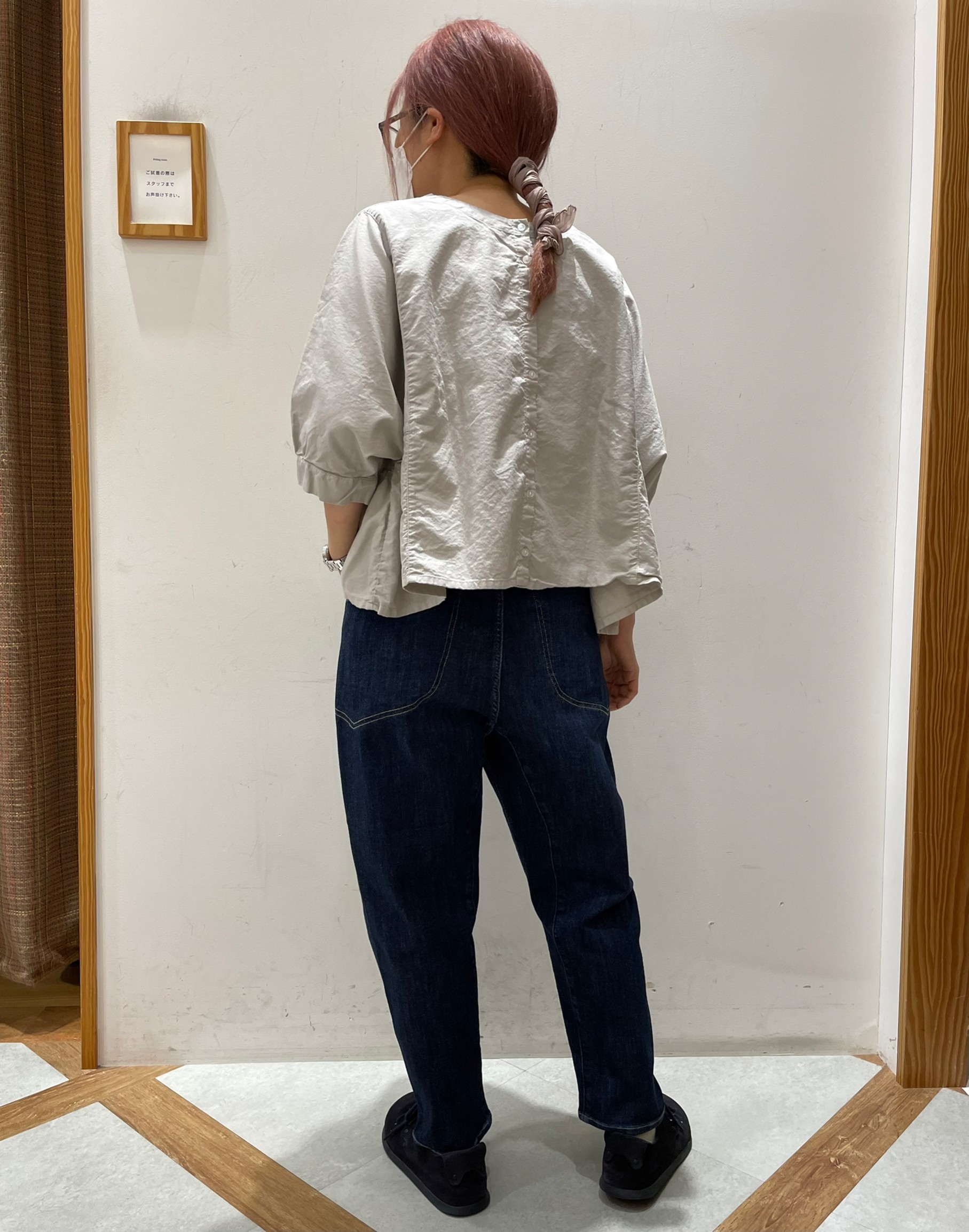 少しだけ前後差をつけた裾にスリットを入れているのでレイヤードスタイルも楽しめますし、腰回りがスッキリ見えしますよ〜!!
