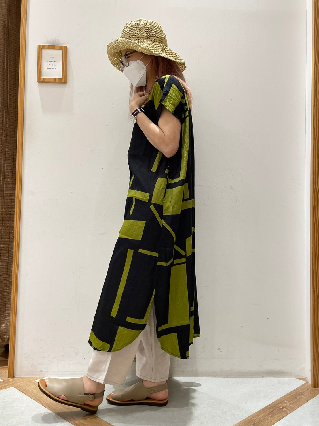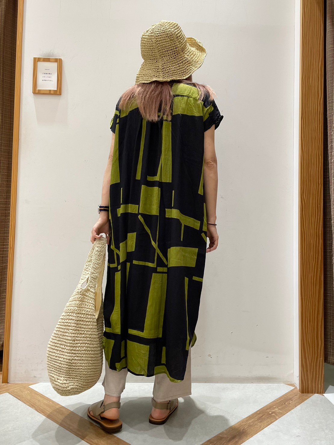 敢えてヒップあたりからワンピースのボタンを外して、より動きが出るように着てみました。
