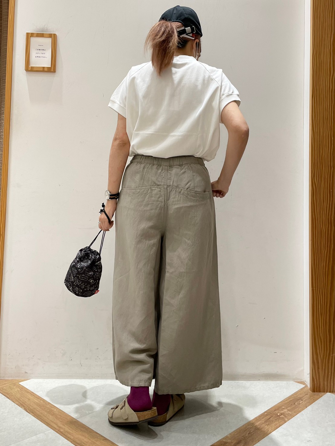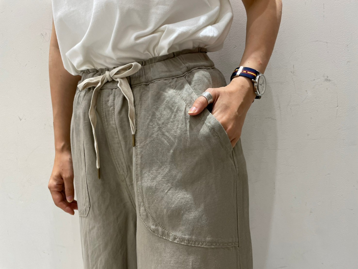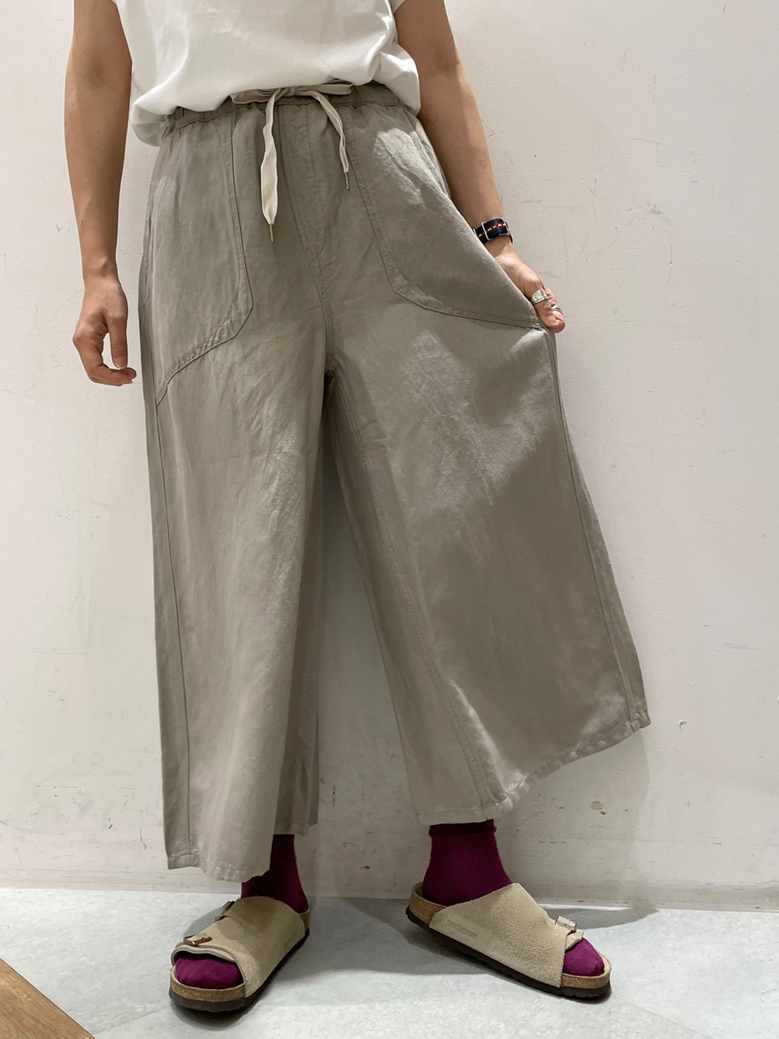 Cafetty、夏の大定番でもあるリネンレーヨンキャンバス生地を使用した、リネンの清涼感とレーヨンのドレープ性を併せ持つ素材。ざっくりナチュラルな風合いなのにとろみもあり、抜群の穿き心地〜♡