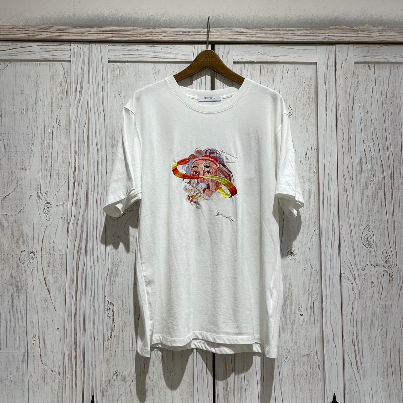 平面、立体、空間とあやゆるものを糸と針で刺しする刺繍アーティスト、二宮佐和子さんとのコラボTシャツ。