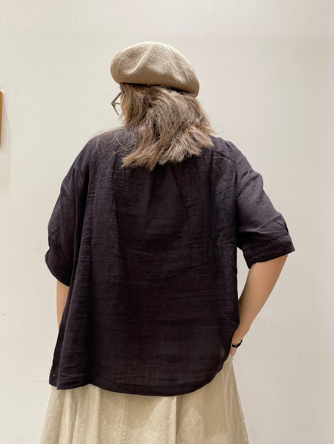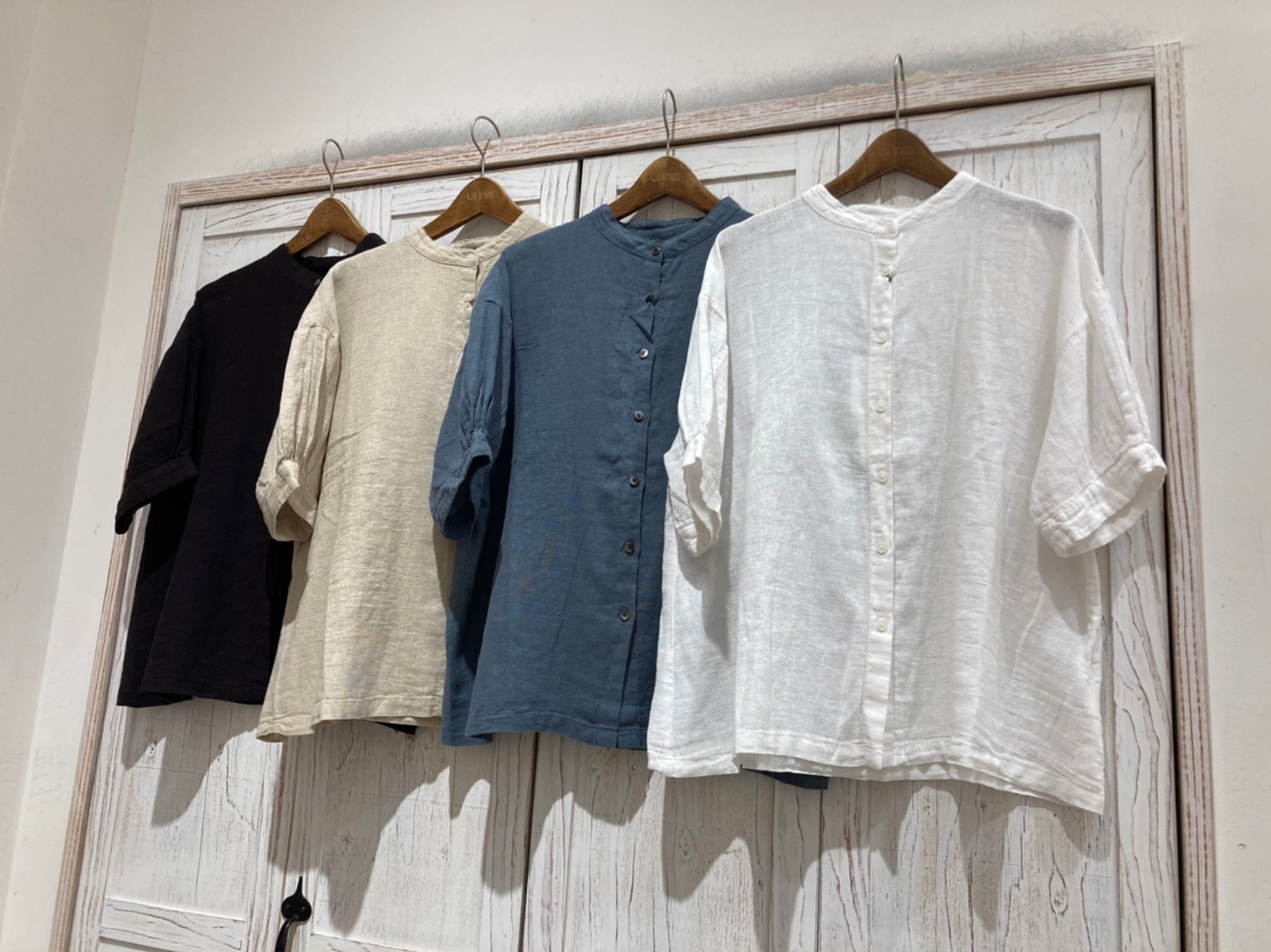 ▽綿麻ガーゼ5分袖スタンドブラウス