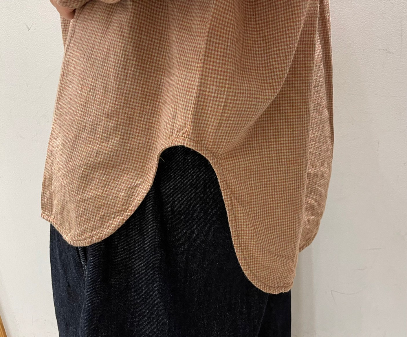 ナチュラルな風合いが魅力のリネン混ミニギンガムシャツ