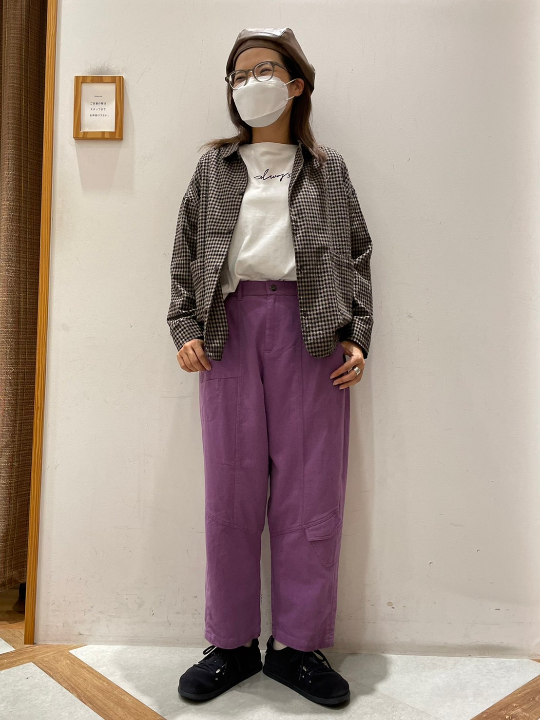このチェックシャツを使って、カラーパンツを合わせたナチュカジュコーデにしてみました〜☆