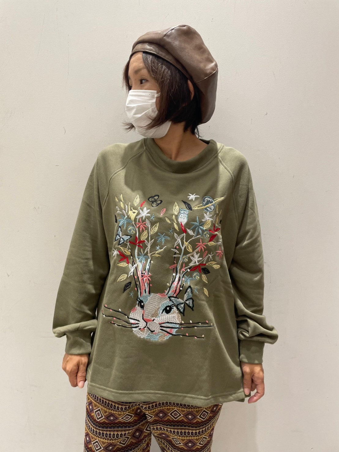 ▽ウサギポップ刺繍裏毛プルオーバー