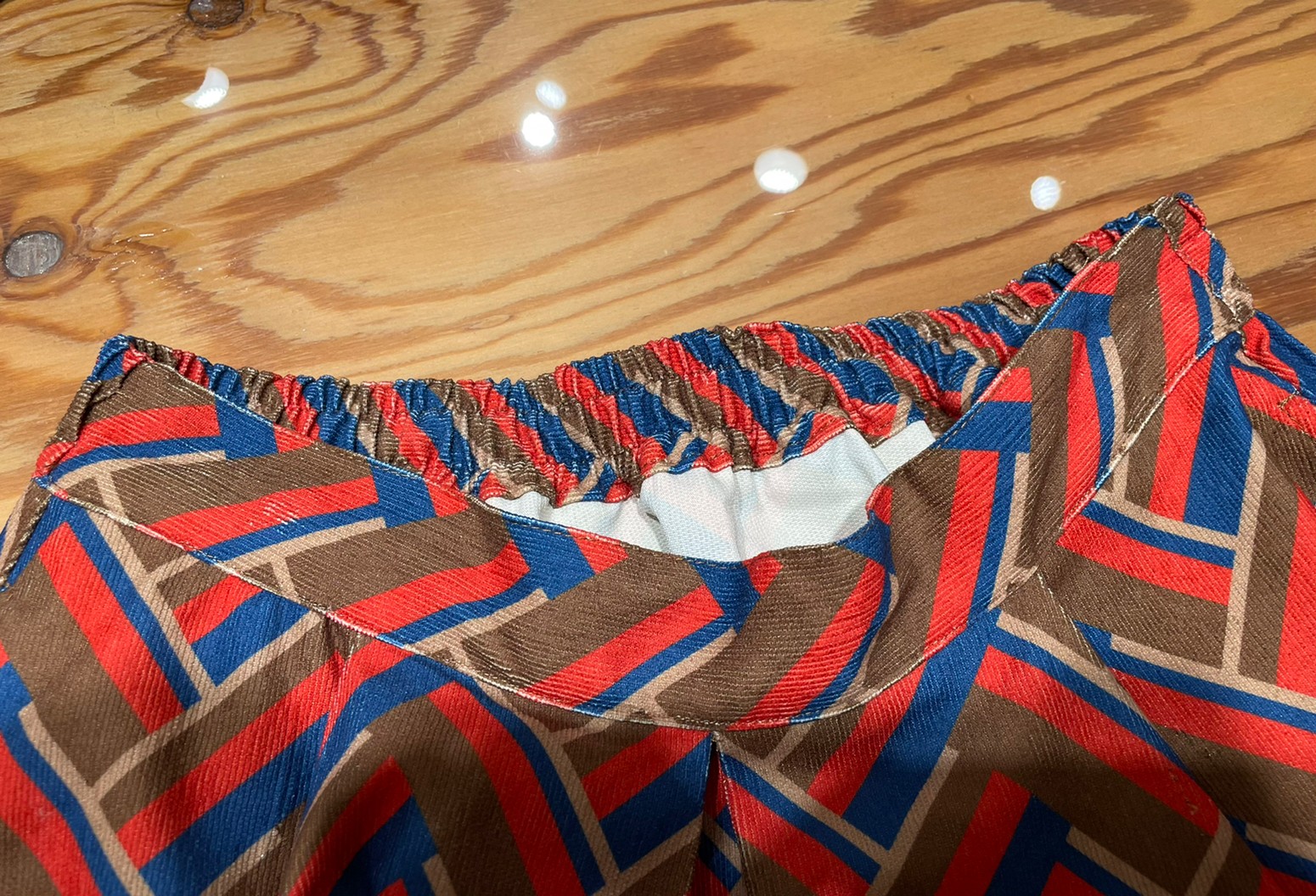 薄手のコーデュロイ生地を使用していて、幾何学模様がプリントされた、周りの人と差をつけられてどこかレトロな雰囲気のスカート。