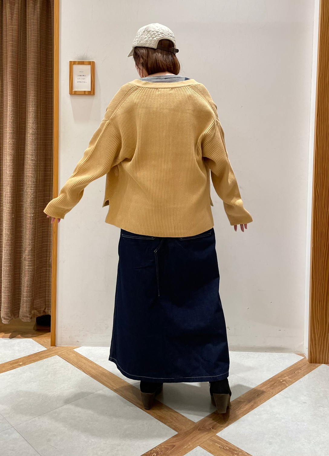 ルーズなサイズ感ですが、はっきりとした縦ラインの畦目がスッキリ見せてくれます。