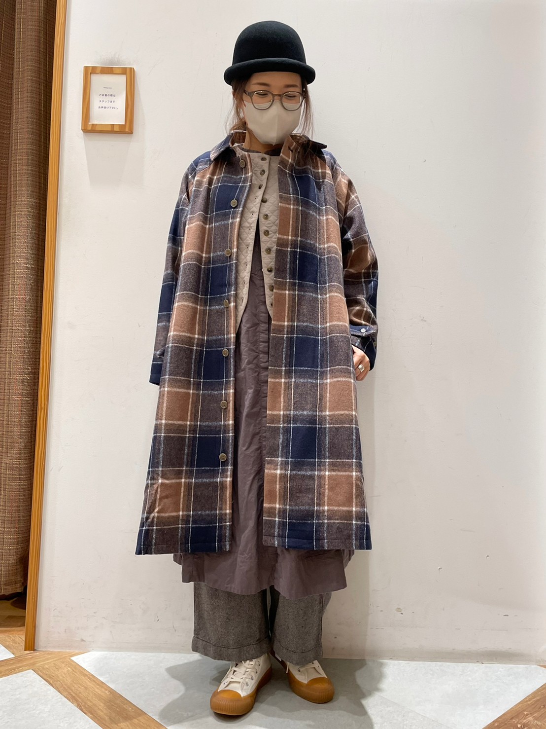 ▽ウール混チェックコート