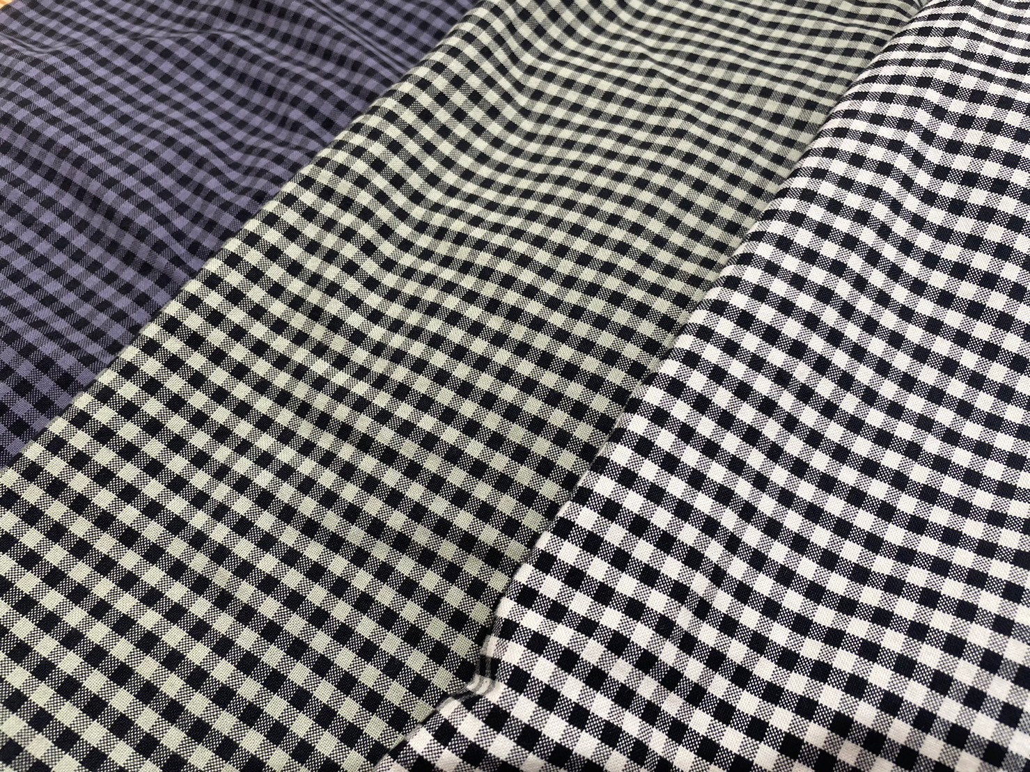 ギンガムチェック柄とストライプ柄をそれぞれニュアンスあるカラーでオーバーダイし仕上げています。