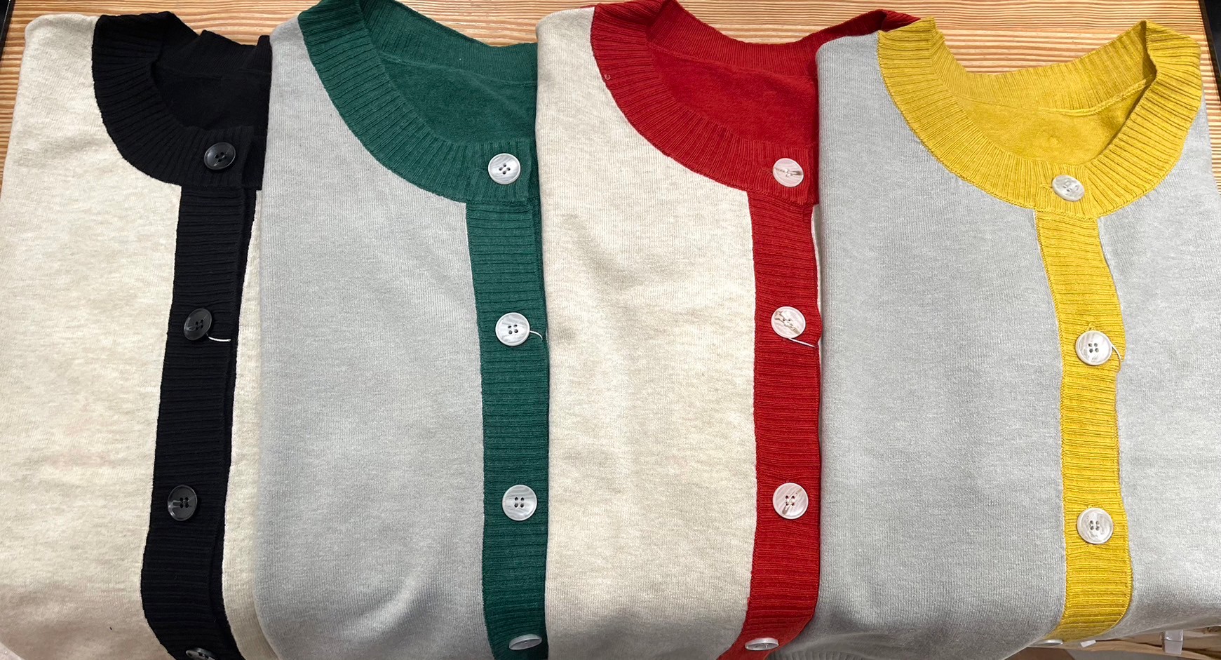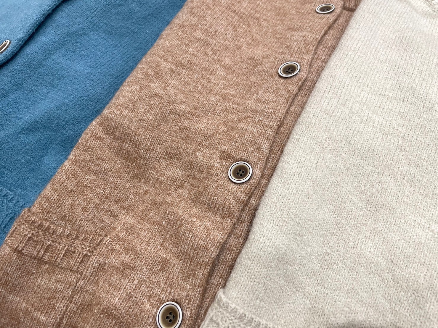 大人気の洗えるニットシリーズの定番カーディガン。