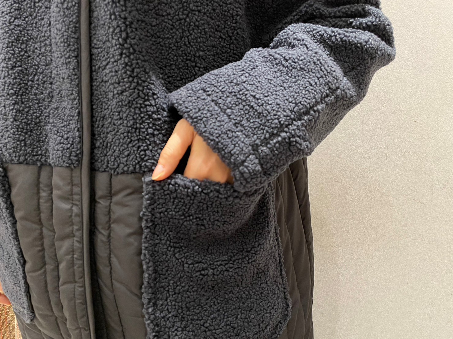 ▽ボア×縦キルトノーカラーコート