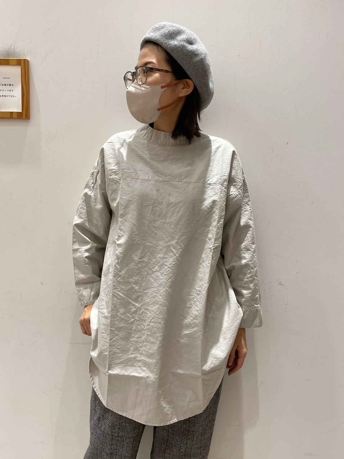 衿ぐりはほんのり立ち上がったボトルネック。程よくゆとりもあり、前後で着用していただける2way仕様でヘンリーネックとしても◎